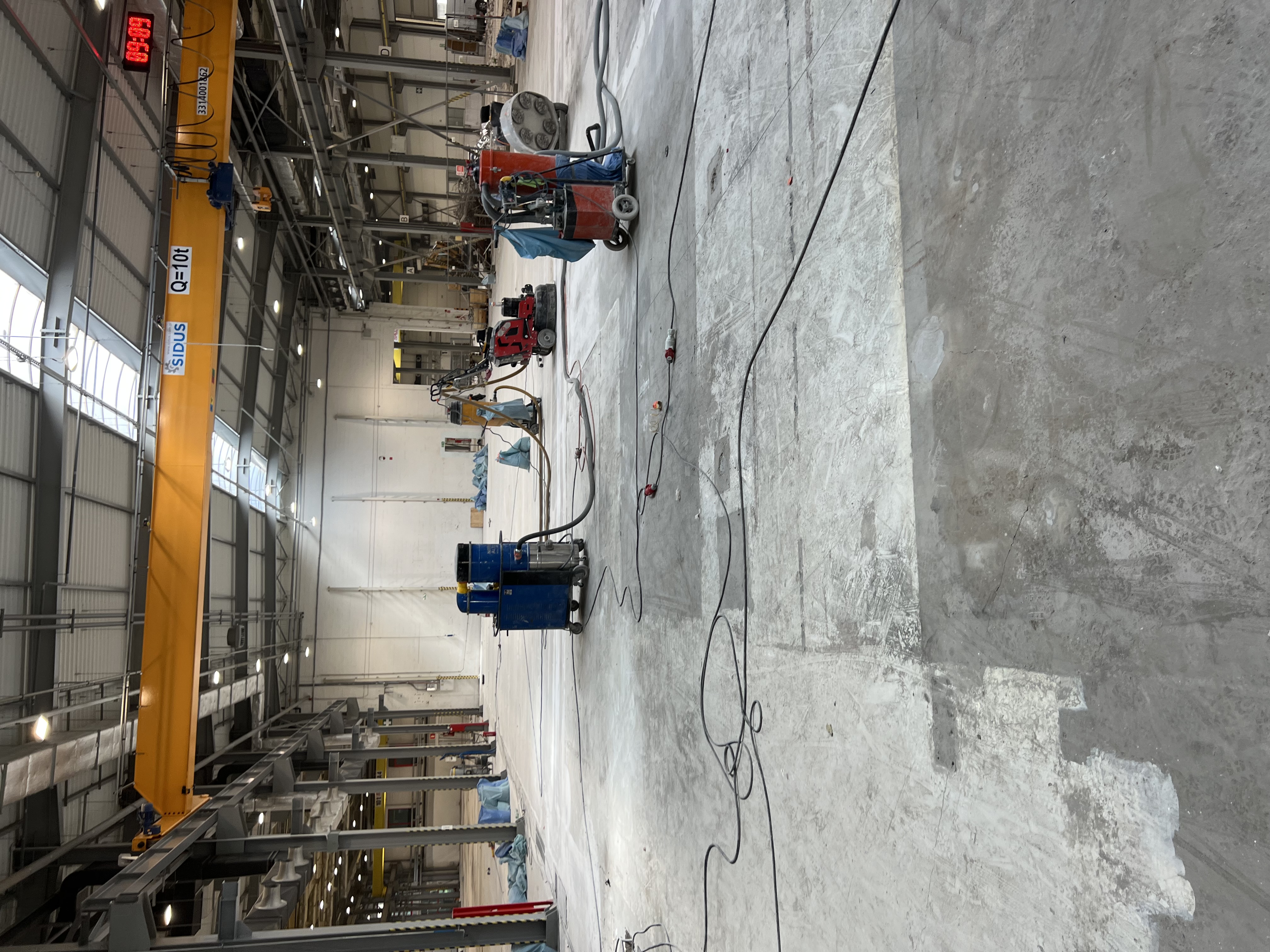 Usuwanie żywicy w Aleksandrowie Łódzkim poprzez szlifowanie, 4500 m2. Przygotowanie posadzki pod polerowanie.
