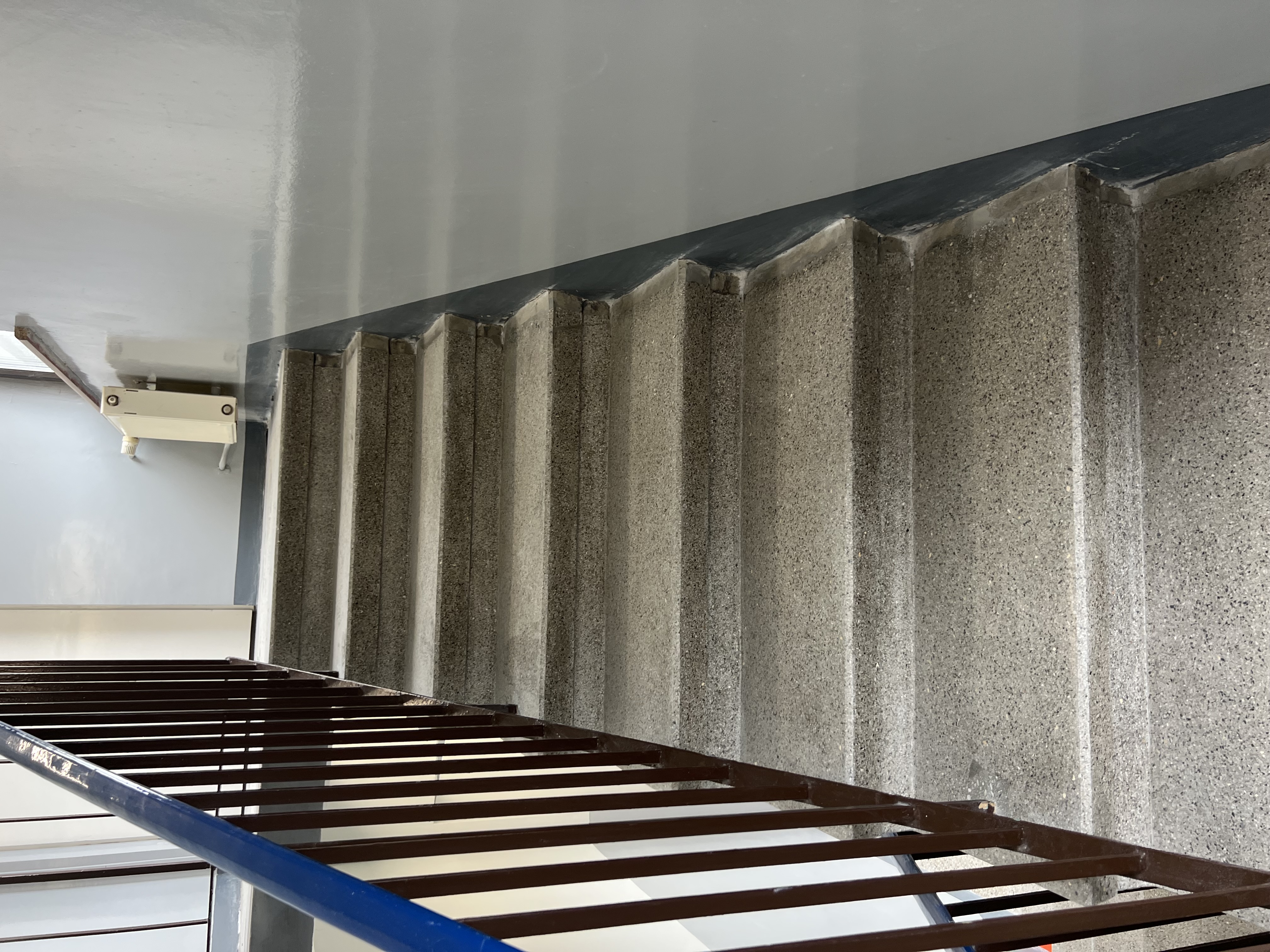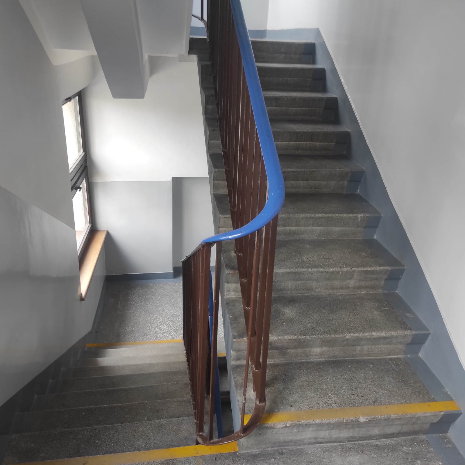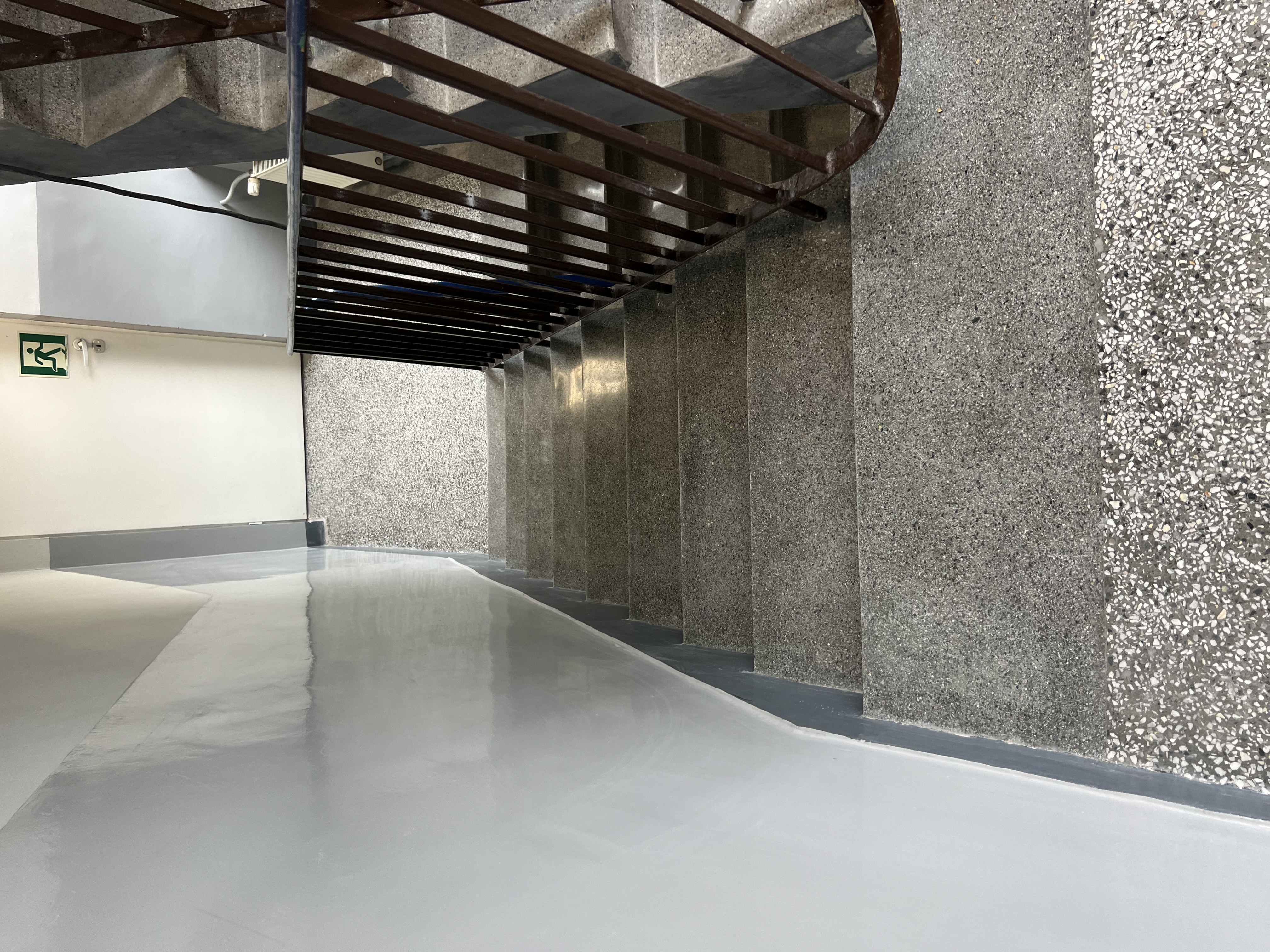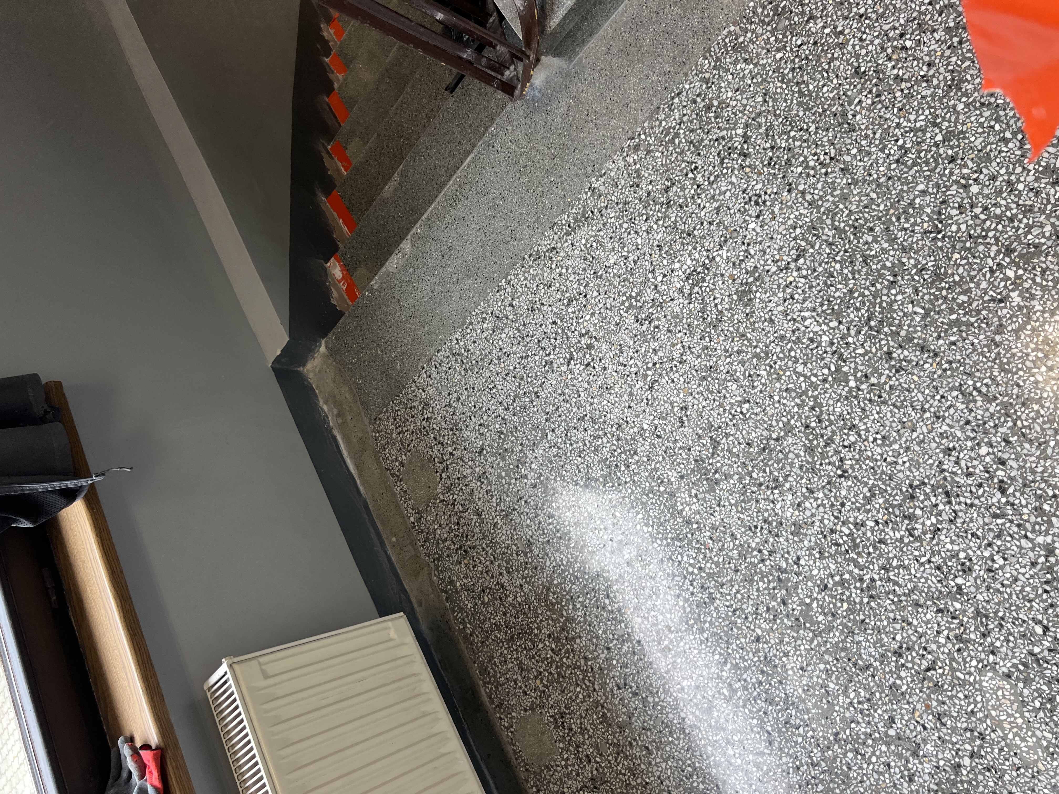 Regeneracja klatki schodowej w Delegaturze Krajowej Informacji Skarbowej w Bielsku-Białej. Szlifowanie, polerowanie, naprawa ubytków, krystalizacja